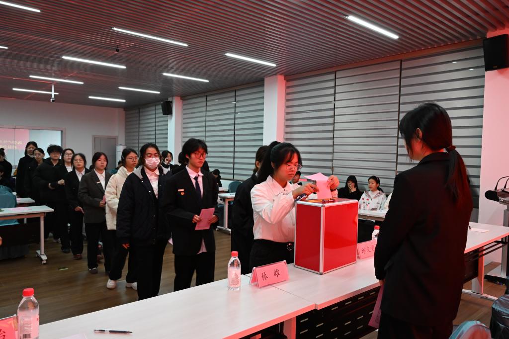 会议在雄壮的国歌中拉开序幕,学院团委副书记施欣怡作工作报告 ,她全面回顾总结了2025年团学工作,并指出工作存在的不足,对2026年工作提出建议,会议顺利完成学院团委委员补选工作。依照《团章》规定,会议以无记名投票方式差额补选戴鑫彬、曾美霞、王聪、刘欣茹、万晨鑫、叶剑英、黄婷等7人为第一届委员会委员。经等额选举,戴鑫彬同学当选为团委副书记。新当选委员表示将牢记嘱托 感恩奋进,在服务学校高质量发展中书写青春篇章,以实干担当服务青年成长成才。
