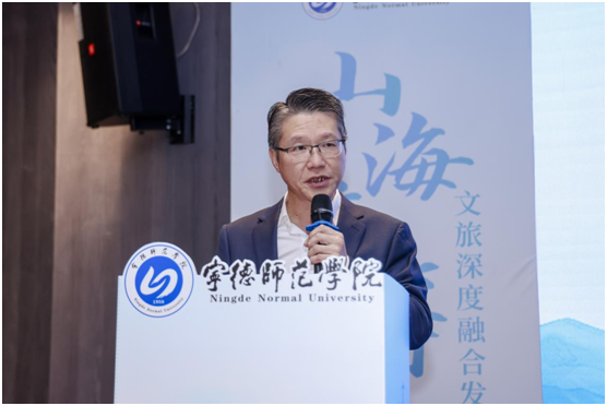 福建省旅游协会常务副会长苏永青致辞,他表示,习近平总书记在福建考察时强调,“要在推动区域协调发展和城乡融合发展上作出示范,健全深化山海协作机制,加强山海统筹、强化功能互补”。宁德依托“山、海”资源联动开发,积极探讨文旅山海统筹发展的新路径、新模式,健全深化山海协作机制,提升“山海宁德”的知名度和影响力,极大地促进区域协调发展和城乡融合发展,做了大量卓有成效的工作,得到了社会各界的好评。