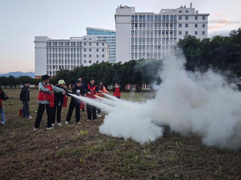 根据《关于开展2024年全省消防宣传月活动的通知》(闽安委办[2024]53号等文件精神,为增强公司师生员工的消防安全意识,提升公司师生的应急处突能力,11月26日下午,公司组织2024级全体新生在逸夫楼实训开展“全民消防 生命至上”实验室消防安全应急演练活动,校保卫处副处长谢华斌到场观摩并指导演练。