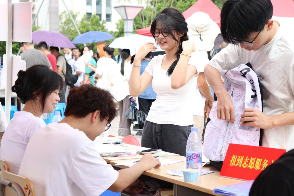 志愿者们穿鲜艳的志愿者服装,脸上洋溢着热情的笑容,手中拿着指引牌,为新生们指引方向。他们的身影在校园里穿梭,如同一道道亮丽的风景线,为新生们带来了温暖和安心。“桃李不言,下自成蹊。”志愿者们用实际行动诠释了这句话的含义。他们不需要华丽的言辞,只需用行动来表达对新生的关怀和帮助。