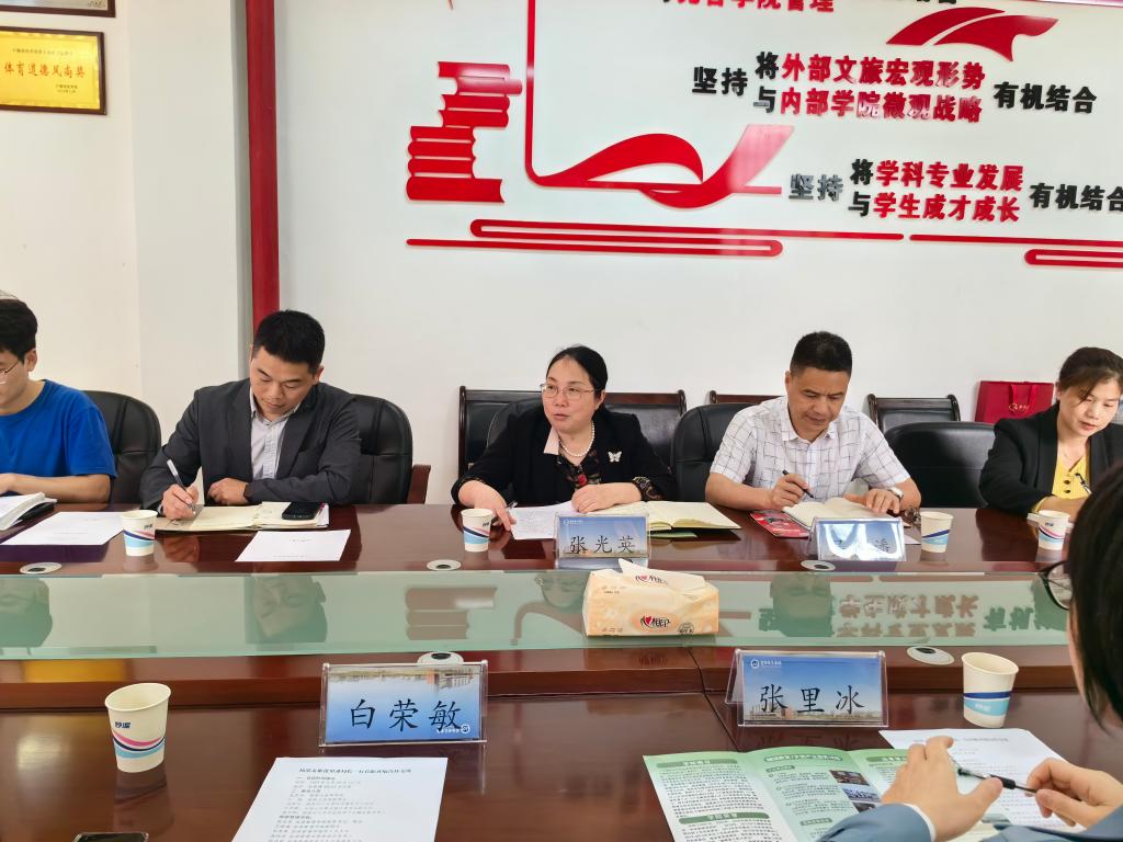 张光英书记对张里冰局长一行的到来表示热烈欢迎,简要介绍了学院的发展历程和办学特色,她表示,学院充分发挥科研、人才优势,为福鼎市文旅单位导游人员培训,文旅项目策划、产业规划、文旅政策咨询等提供支持。希望以此次交流为契机,在人才培养、校企合作基地建设、员工就业方面加强双方的合作交流。