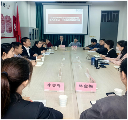 座谈交流会上,福建商学院旅游与休闲管理学院介绍了学院的发展历程、专业设置、团队队伍、教学科研、实习就业等方面的基本情况,并分享了经验做法。随后,双方就各自在教学管理、科研创新、人才培养、毕业生实习就业等方面的经验和做法进行了深入的探讨和交流。张光英书记表示,福建商学院旅游与休闲管理学院在教学管理、人才引进、毕业生就业等方面取得了良好的成绩,值得学习和借鉴,希望双方加强沟通交流,加强校院互动,相互借鉴,共同提升办学水平。