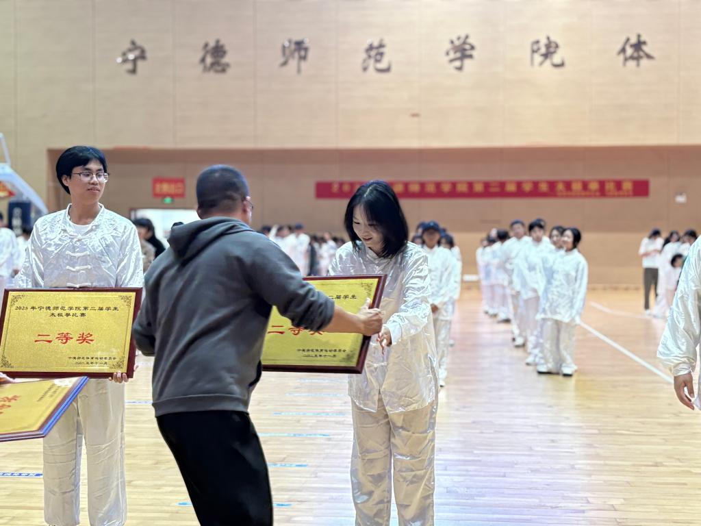 比赛当天,队员们精神饱满,动作舒展大方。从起势到收势,每一个弓步、推手、揽雀尾都刚柔并济,既体现了太极拳的沉稳内敛,又展现了旅管学子的青春活力。观众席掌声不断,评委们对其表现给予认可。