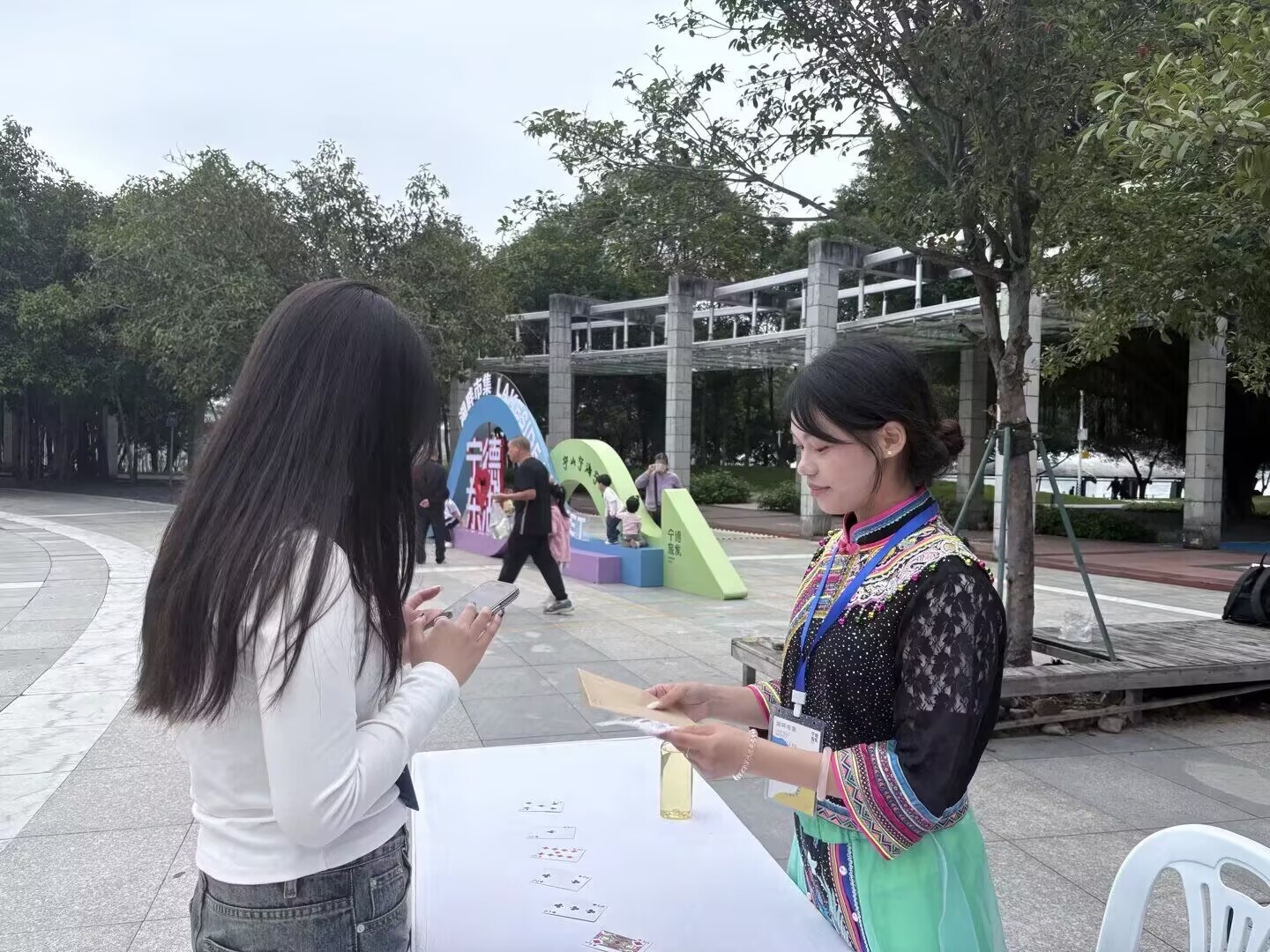 活动期间,志愿者坚守岗位、分工协作。在A区服务台,他们有序为市民游客发放集章卡,耐心讲解“山海奇妙记”集章规则及五大区域亮点;在市集各个角落,他们引导人流、协助摊主开展工作,主动为游客提供咨询指引,全力保障市集有序运转。志愿者将课堂所学的旅游管理专业知识灵活运用到实践中,在服务文旅活动、助力地方发展的过程中,丰富了社会实践经验,提升了沟通协调、现场执行等综合能力,真正实现了“在实践中学习,在服务中成长”。