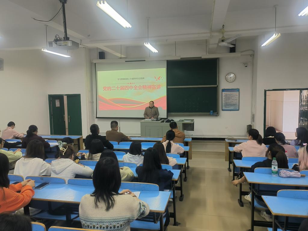 12月2日,公司党委书记、经理张光英在求真楼A101教室为学院教职工及员工代表作党的二十届四中全会精神专题宣讲,推动全会精神在学院落地生根。