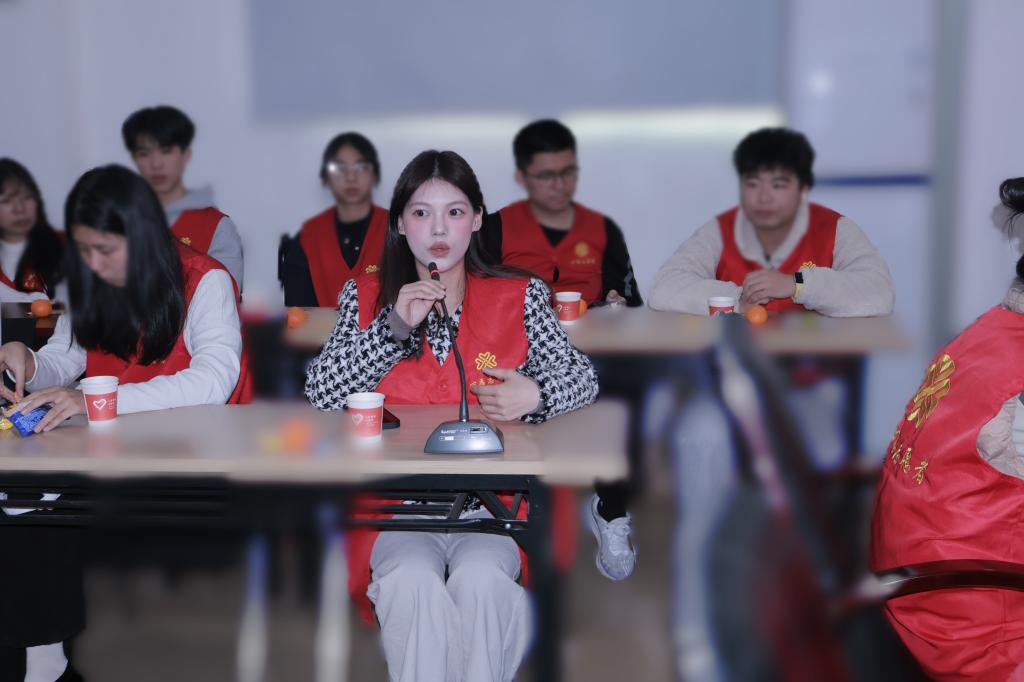 凭借扎实的服务、突出的表现与良好的精神风貌,戴鑫彬同学受邀参加新春座谈会,并作为优秀青年志愿者代表上台发言。