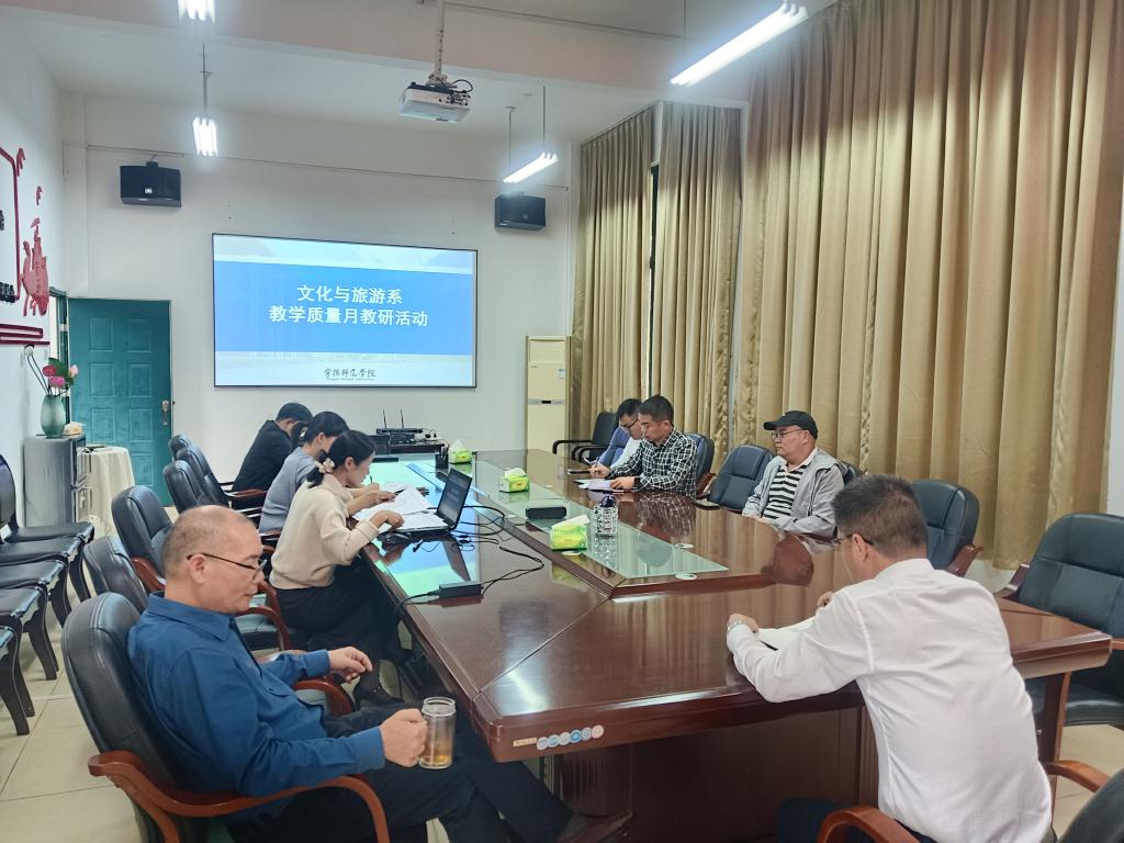 为深入贯彻落实学校第十七届“教学质量月”活动部署要求,提升人才培养质量与专业建设水平,4月13日,文化与旅游系于求真楼D105会议室召开教学质量月专题教研活动。本次活动由系主任谢新丽老师主持,系部全体教师参会研讨。